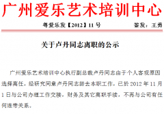 广州爱乐艺术培训中心执行副总裁卢丹同志由于个人客观原因选择离任...